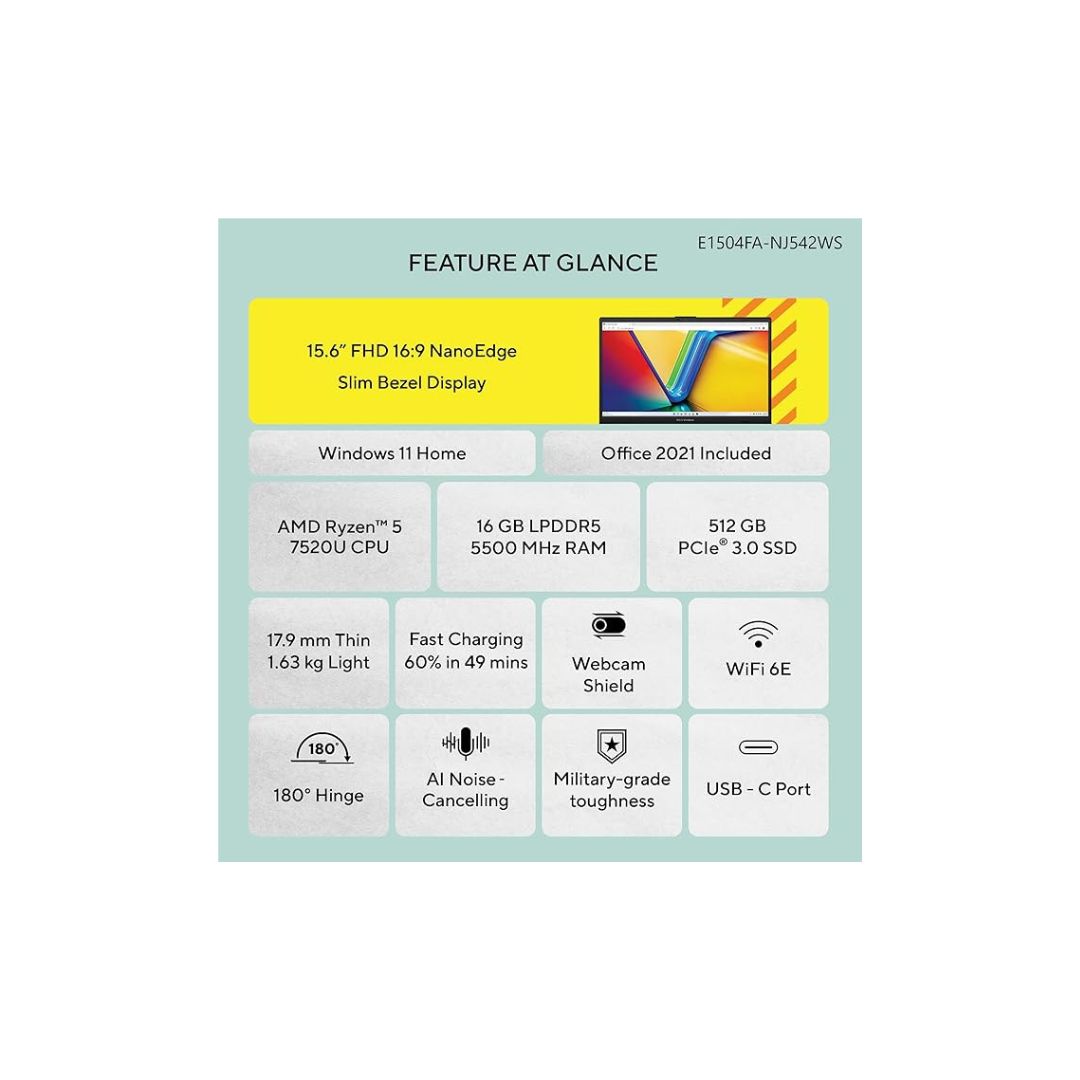 Processor: AMD Ryzen 5 7520U Mobile Processor (4-core/8-thread, 4MB cache, up to 4.3 GHz max boost).